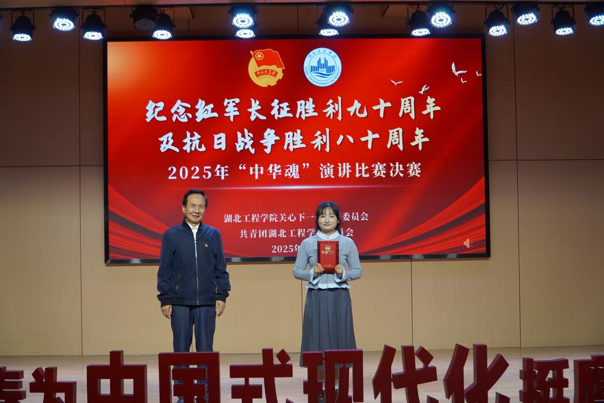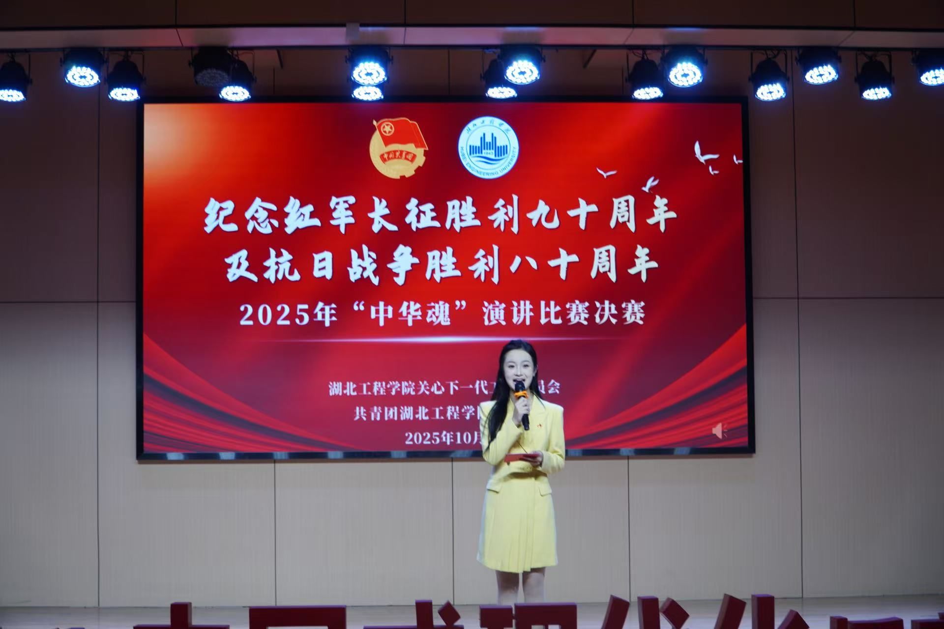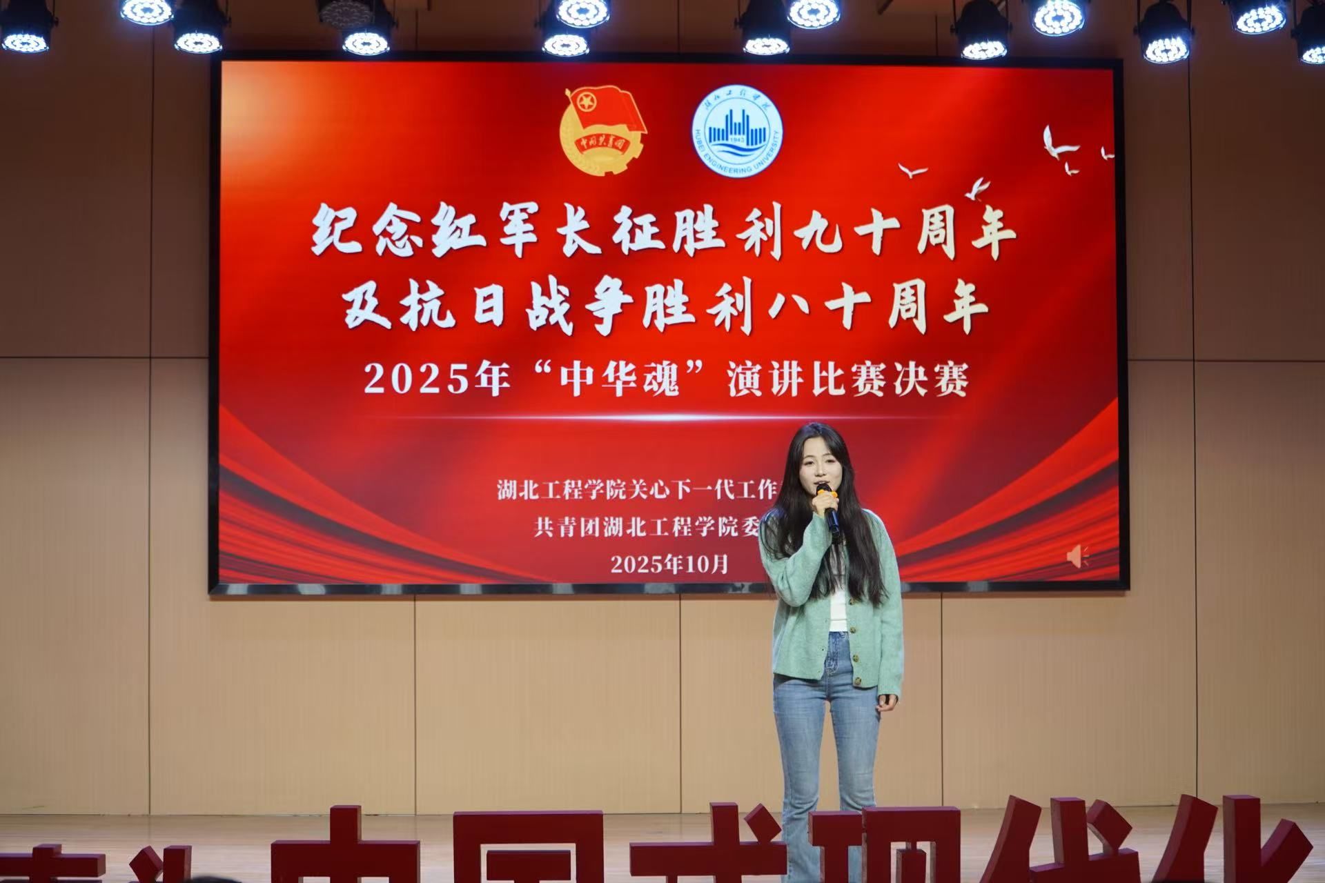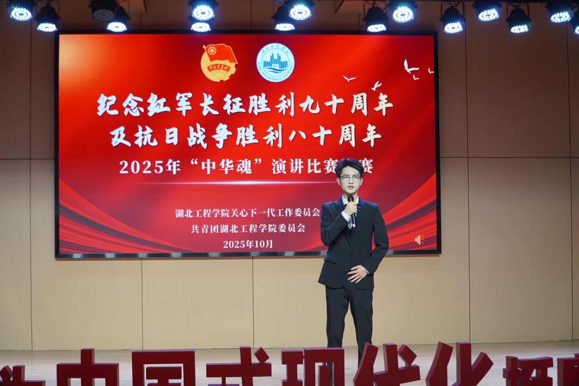 (本报讯)为纪念红军长征胜利90周年及抗日战争胜利80周年,引导广大青年学生铭记光辉历史、传承红色基因,2025年10月15日下午14:30,由湖北工程学院关心下一代工作委员会主办、共青团湖北工程学院委员会承办的2025年“中华魂”演讲比赛决赛在教一报告厅举行。