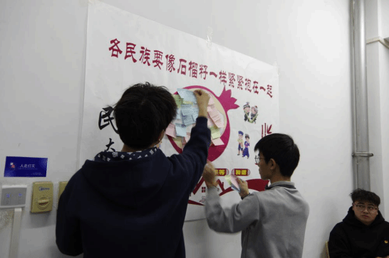 活动进入第二篇章,聚焦民族团结教育。在深入解读中华民族共同体理念后,全体团员郑重许下对民族团结的承诺,将写满寄语的卡片拼成“石榴籽”同心圆,以富有创意的形式展现了“像石榴籽一样紧紧抱在一起”的深刻内涵。