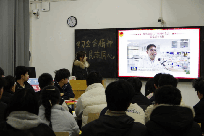 活动在庄严而激昂的共青团团歌声中拉开序幕。25级智能建造1班团支书古欣冉同学首先通过一段短片,带领与会师生系学习了党的二十届四中全会核心要义。