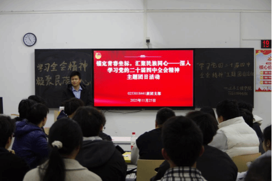 为深入学习贯彻党的二十届四中全会精神,进一步增强共青团组织的引领力、组织力、服务力,教育引导广大团员青年坚定理想信念、增强团员意识,2025年11月25日,土木工程学院0243018342班团支部在天工楼312教室成功举办了一场示范性主题团日活动。校团委相关负责人和其他各学院团委书记共同观摩参与了此次活动。