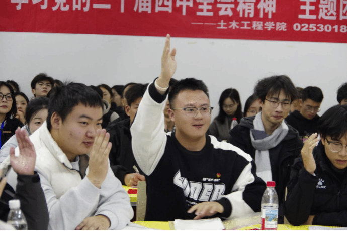 在随后的互动交流环节,同学们围绕“我的专业与国家蓝图”这一主题踊跃发言,结合土木工程专业特色,畅谈如何将个人学业规划、职业发展与“十五五”时期国家发展大局紧密融合。