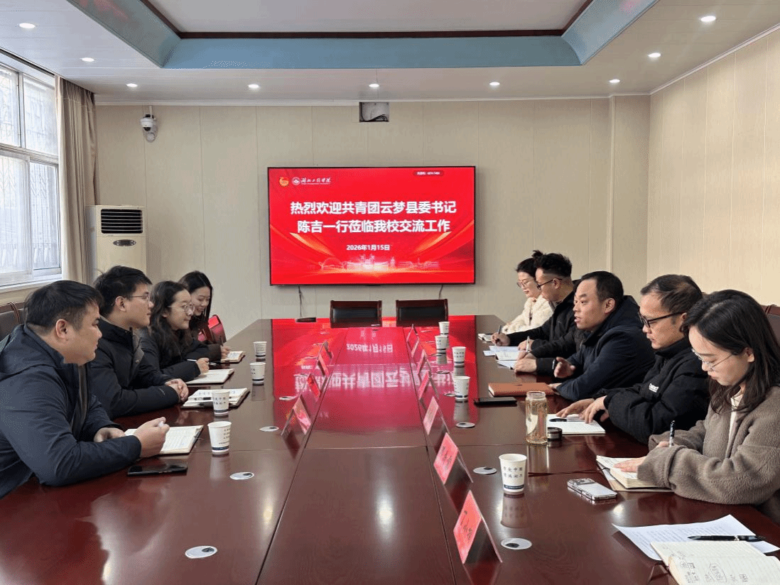 1月15日,云梦县团委书记陈吉一行莅临我校交流工作。校团委全体成员、湖北省第十四批博士服务团成员及我校生科院周勇博士、外国语学院辅导员魏雨晴参会,会议由校团委书记李云山主持。双方围绕人才共育、产业赋能、文旅升级、志愿服务等核心议题深入研讨,共商校地协同发展新路径。